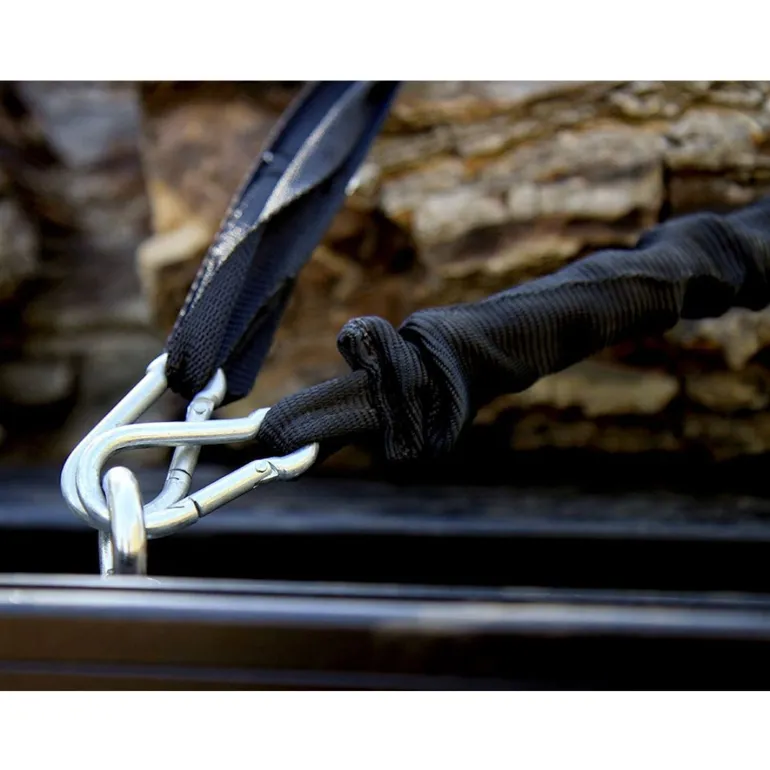 You can even remove the carabiner and loop the Stratchit through itself – to fasten around any roof rack rail, railing, pole, bumper, tire carrier…. etc.