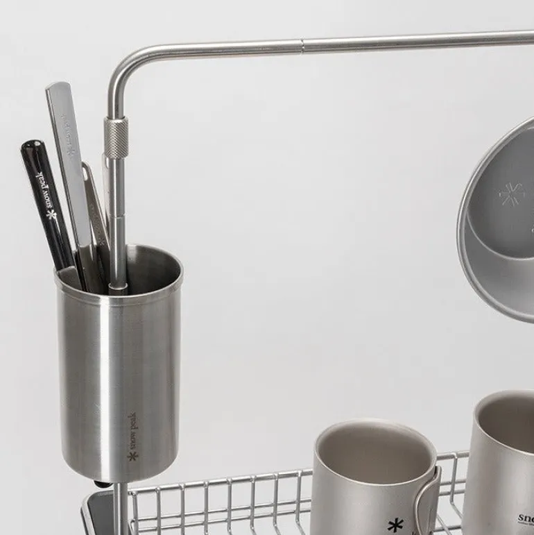 The stand can be inserted into the TTA Frame to store small items and utensils or rest on a table. To use, slide the stand onto the TTA Frame, connect it to the TTA Clamp, and adjust the tension.
