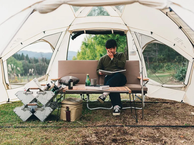 Use the futon as a bed, two individual chairs with the third portion as a table, or three separate stacking shelves. Pack it up and take it camping, use it on your patio or in your living room. The Campfield Futon Starter Set includes two natural wood armrests for added style, plus three base pieces, backrest, and seat cushions. Pair the Campfield Futon Starter Set with the IGT Slim for complete outdoor set-up.