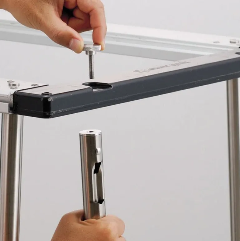Set your cooking space to a standing height, then dining while seated. To use the IGT Height Adjuster, slide into the edge of the IGT Frame, then attach the next table at preferred height and tighten the knobs to secure. Pair the IGT Height Adjusters with the IGT Three Unit Frame or the Renewed Bamboo IGT Table Long.