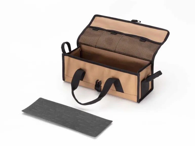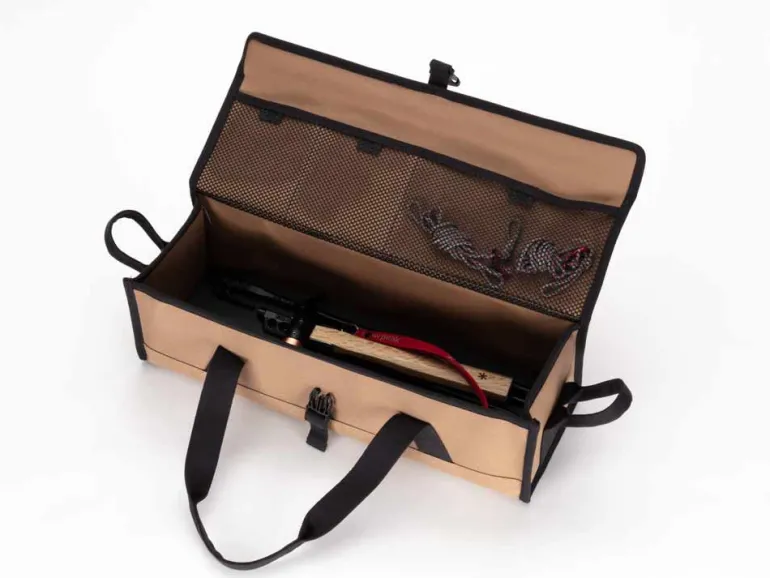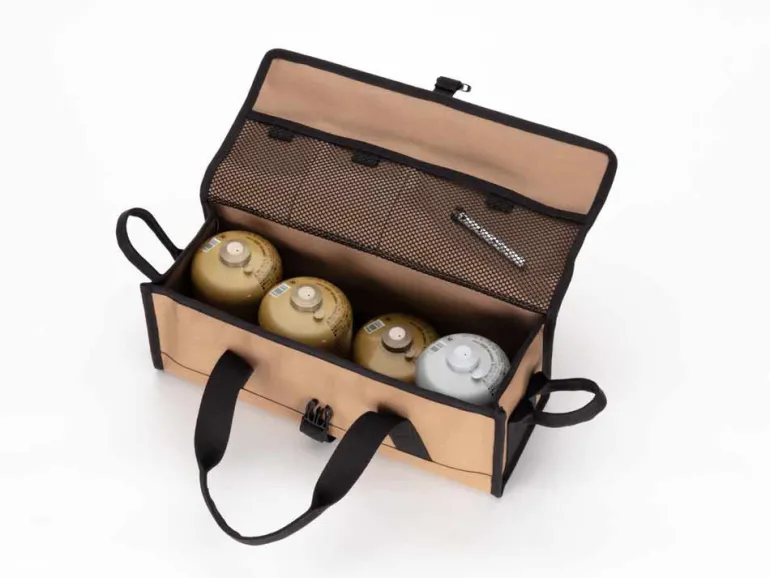 The Multi Container series, designed in Japan, features small (S), medium (M), and large (L) canvas cases each suited for different storage needs. The small size is perfect for cutlery and small cookware, the medium is ideal for general gear and campsite essentials, and the large is best for storing Solid Stakes and the Copper Head Peg Hammer. All models come with reinforced inserts, durable, function-first canvas, and sturdy handles for easy carrying, making them versatile solutions for stacking and stowing a variety of gear.