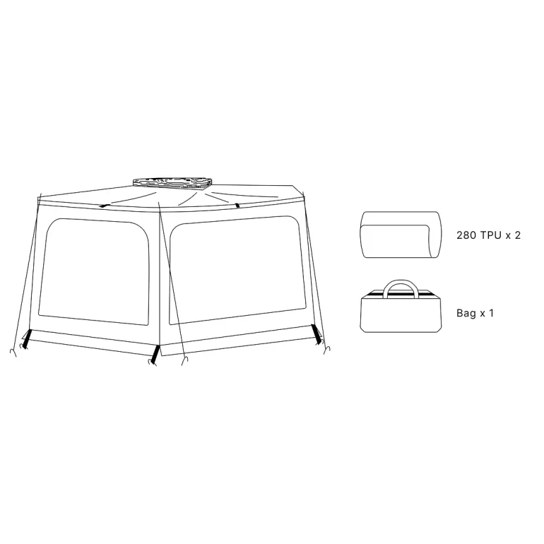 Do not give up on enjoying nature’s views, even when heavy rain forces you to fully separate from the outdoors during camping. The TPU for 280 Awning, designed exclusively for the 280 Awning, allows you to experience expansive nature scenery through a large window from within a sheltered space. Stay comfortable and protected while still feeling onnected to the outdoors, regardless of the weather.