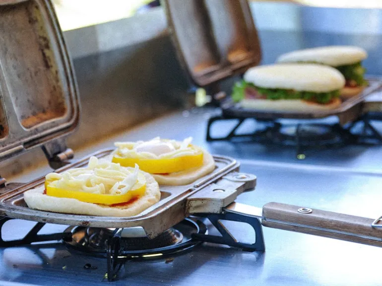 Named after the Italian word for sandwich, use the Tramezzino to make delicious toasted sandwiches by placing your bread and desired fillings inside, then placing over a heat source. Pair the Tramezzino with the Takibi Fire and Grill.